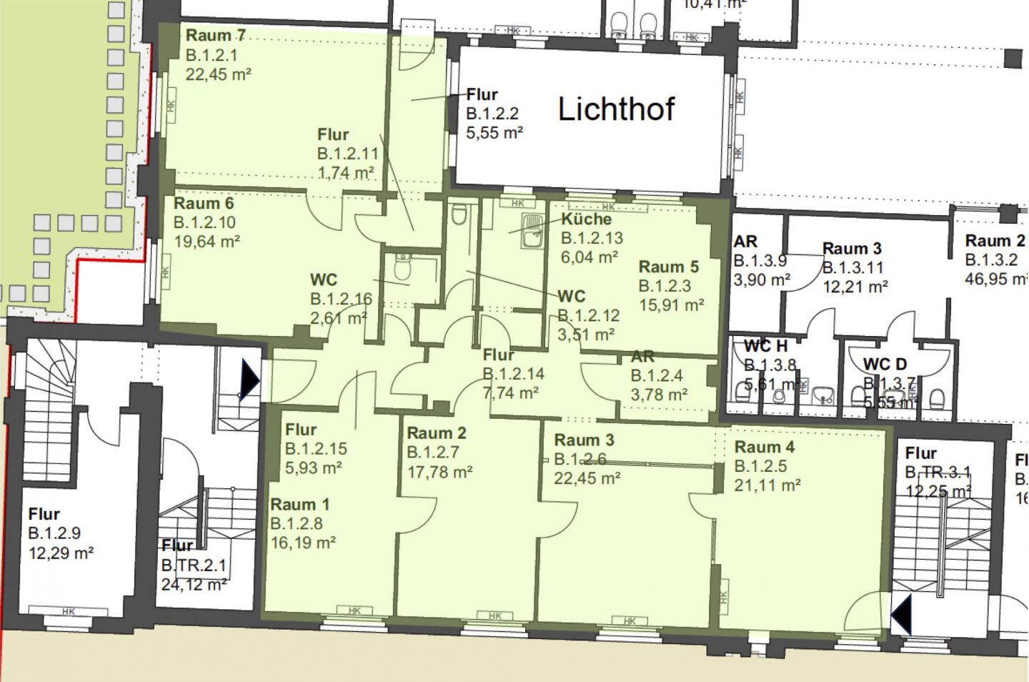- Küche, zwei WCs, Abstell- bzw. Serverraum
