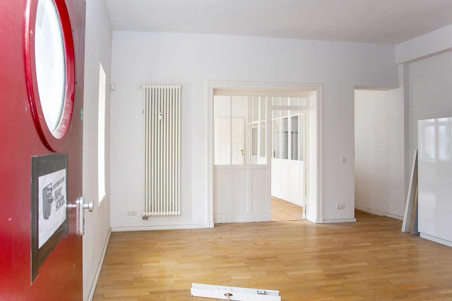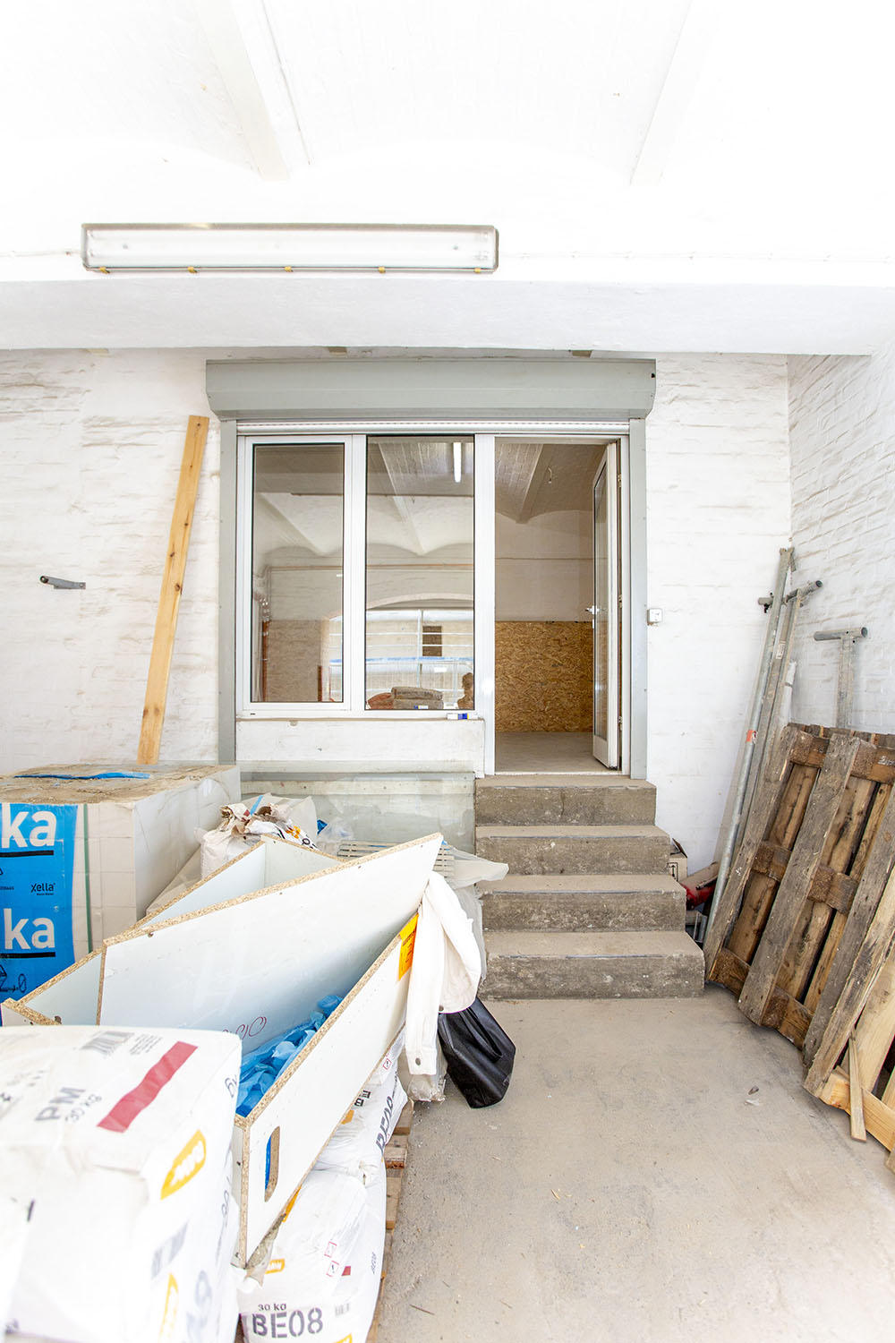 - Zwei Räume, leicht erhöht, mit Schaufenster zum Hof